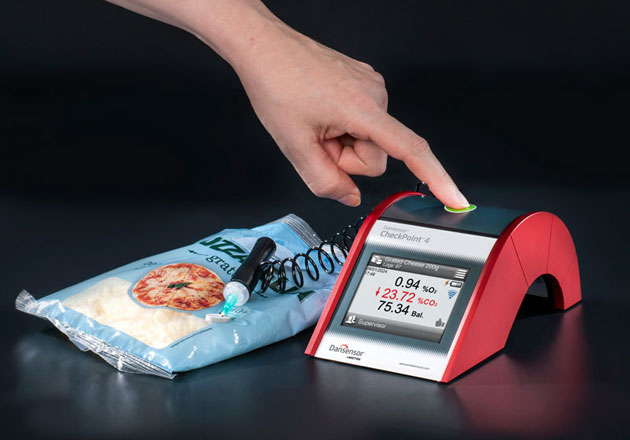 使用 Dansensor® CheckPoint® 4,您可以快速测试各种形状和大小的改良气氛包装中的 O2 和 CO2 级别。