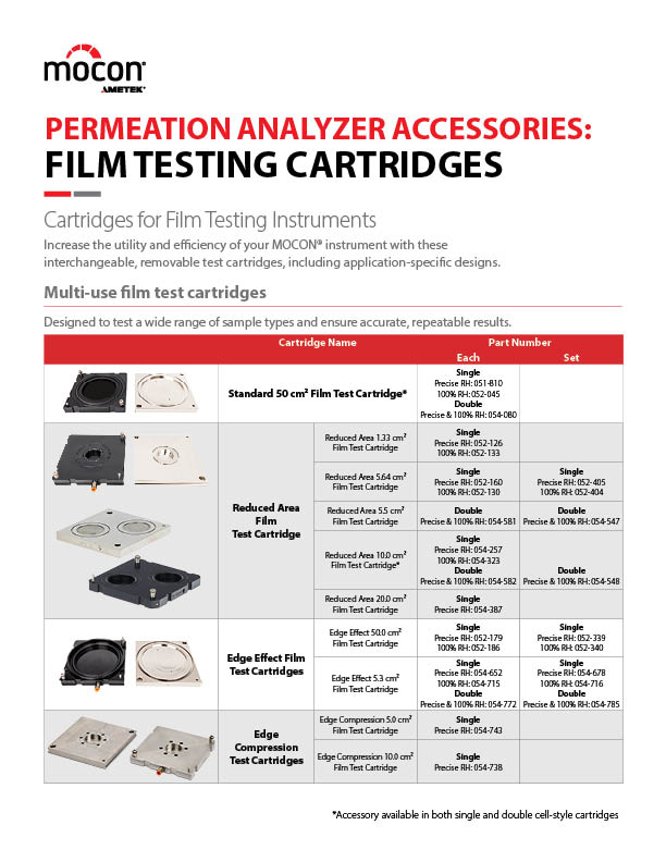 多用途胶片测试盒 旨在测试各种样品类型并确保准确、可重复的结果。所有墨盒都可以在 OTR 和 WVTR 之间互换,以进行精确控制的 RH 测试,WVTR 可选 100% RH 测试版本: